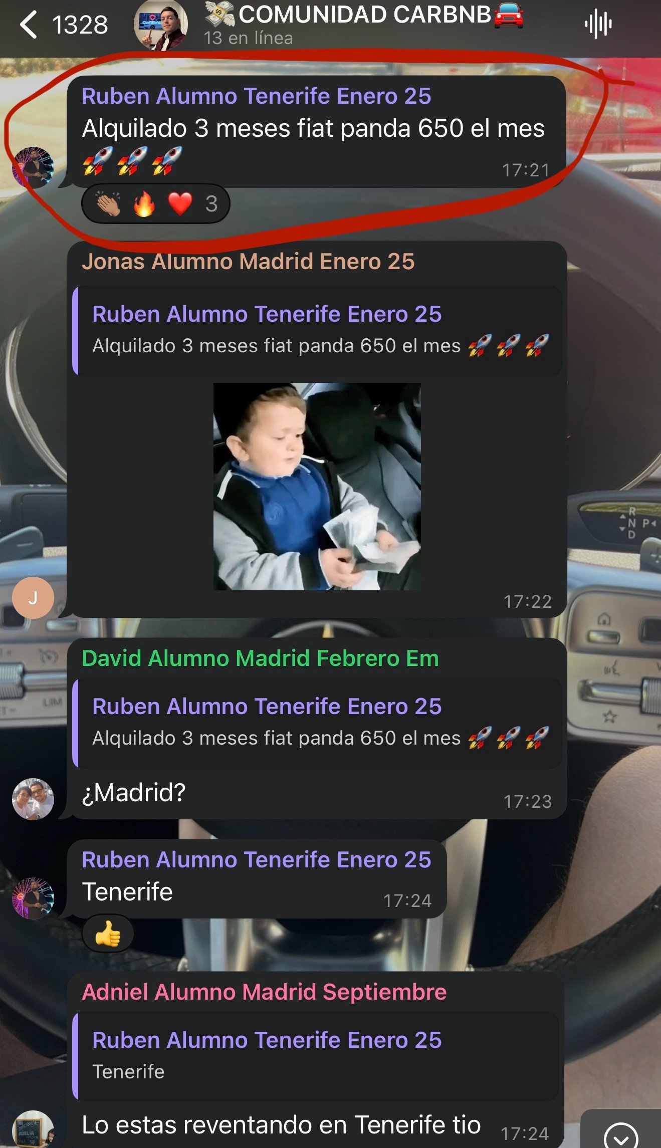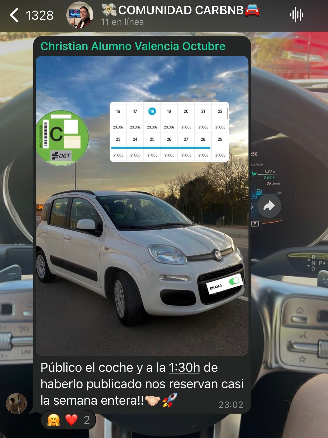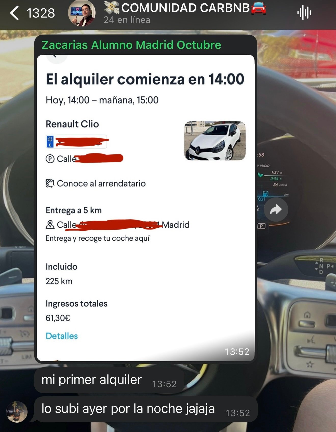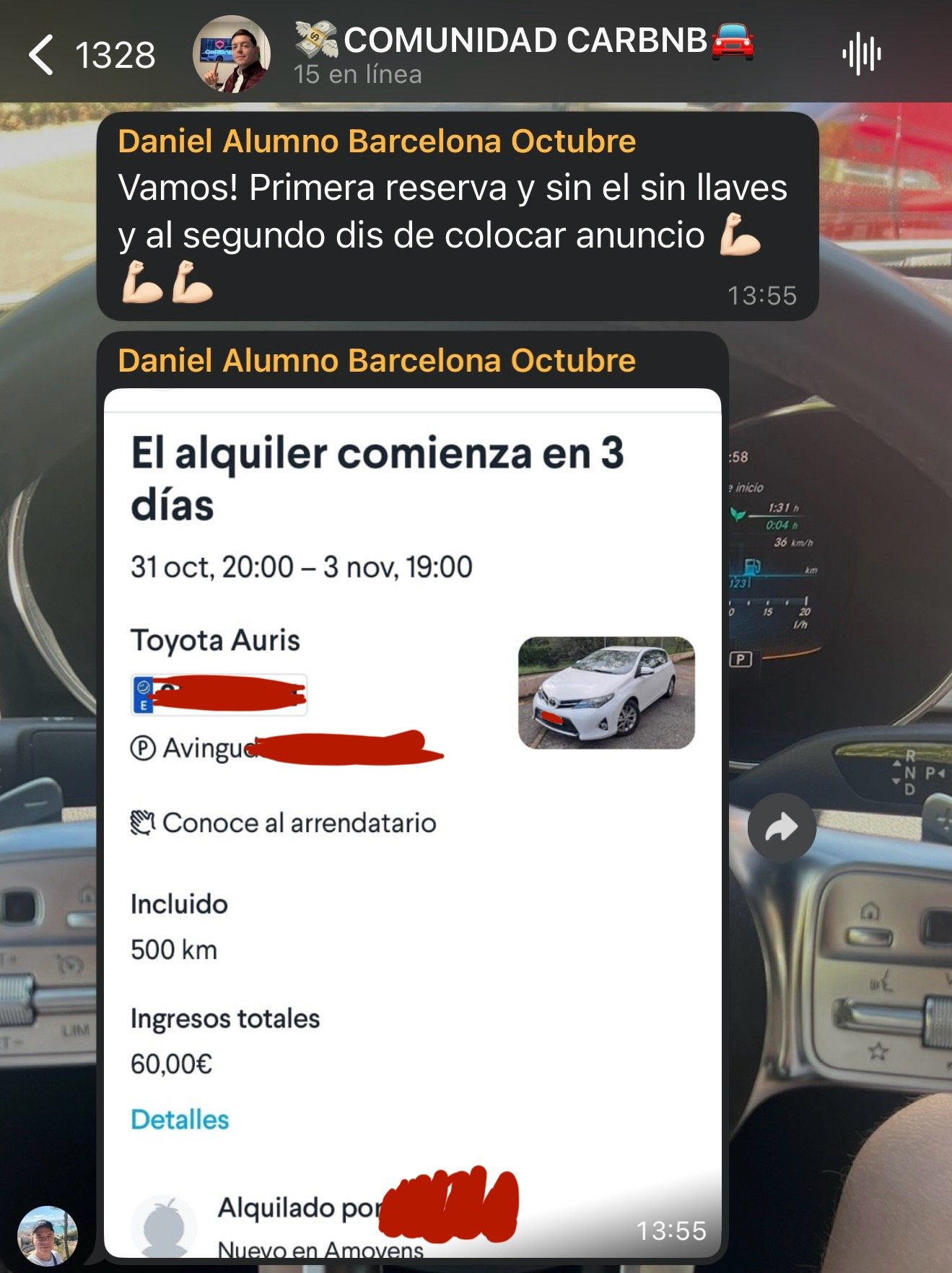 Vas a poder pertenecer a un grupo exclusivo de expertos en alquileres dentro de tu ciudad donde se pasarán oportunidades y clientes recurrentes para que saques una rentabilidad brutal a tus coches.